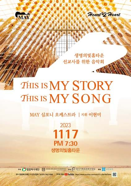이에 선정된 선교사들을 위한 특별 음악회가 ‘THIS IS MY STORY, THIS IS MY SONG(이것이 나의 간증이요, 이것이 나의 찬송일세)’라는 주제로 11월 17일 오후 7시 30분 생명의빛홈타운에서 MAY(메이) 심포니 오케스트라(단장 정대균, 지휘 이현미) 연주로 개최되며, 유튜브로 실시간 방송된다.